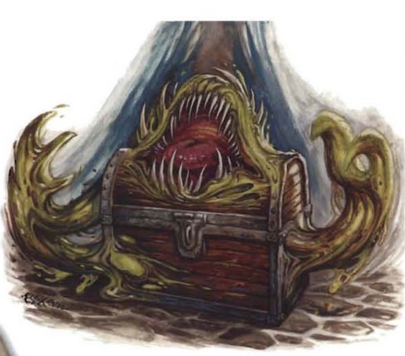 A common form adopted by mimics, the chest is an irresistible lure. Whether placed among real objects or standing alone, it invites curiosity, and punishes it immediately.