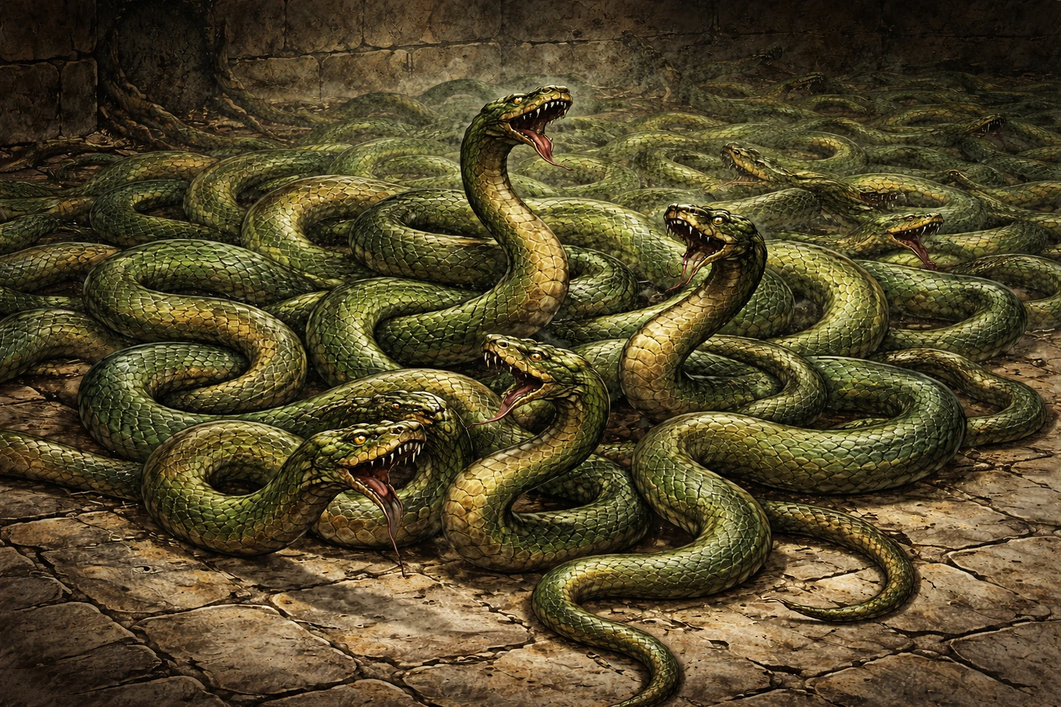 A writhing mass of small, venomous creatures, the venomscale swarm attacks as a unified body. Their bites are numerous and relentless, quickly overwhelming those unable to escape their reach.