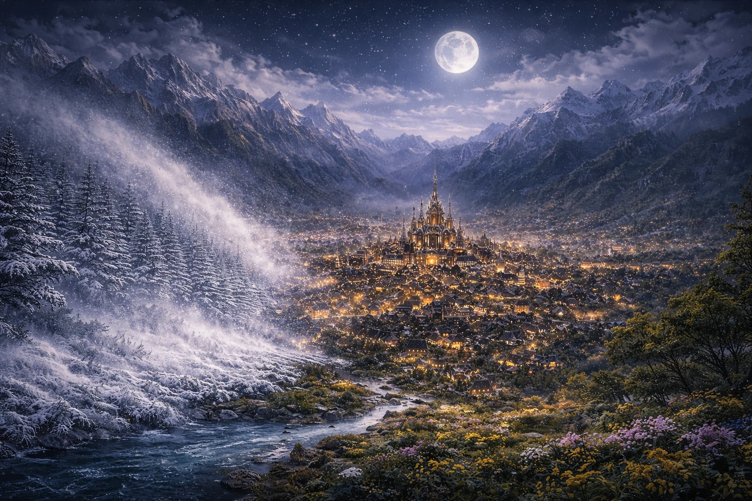 On TalArd, 1st of VronArd, 790, the Spring Snapdragon Court of the Feywild was at the height of it’s 5 Day new year and season celebration. With the three moons full at the top of the sky, magic was at an all time high. The air itself was heady, causing a wonderful slight intoxication just breathing and existing. Minor cantrips cast would excel beyond their level. Rituals could be cast without components, completing in half the time. Revelry was high, wine was pouring, everyone was feasting. Then the alarm went up. Sweeping in, over the mountains to the west, an avalanche of snow and sleet poured down. In the eternal land of spring, snow was unheard of. An occasional chilly morning was the coldest they would have to endure. No one was prepared. The blizzard blanketed the city. Some were buried. Many who sheltered froze to death in their homes. Dozens of nobles never made it inside at the palace and froze in the courtyard. Unprepared for anything of this nature or magnitude, the losses were catastrohpic.