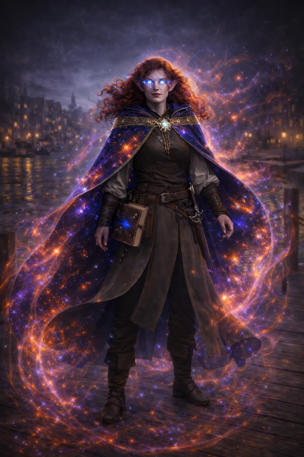 Ciliren Leonan was always meant to be a Member of the Many Stars. At least that’s what the Oracle told her. A bard by trade, she loved nothing more than collecting stories, and reciting them in the greatest drinking establishments across the world; and some of the second best, and some of the minor ones. OK, anywhere she got a chance to perform, she would. She did perform at the greatest places, but also freely in town squares, along the road, on the ships she traveled on, and anywhere where someone wanted to hear great stories and legends. Her speaking voice was said to be of a summer breeze, warm and refreshing. Her singing voice of honey, sweet and smooth. When a member of the Many Stars approached her to join, offering her free food, lodging, and material wherever she would go, in exchange for minor moments of her time, she agreed without question. Granted her cloak, she simply carried on with her lifestyle of travel, song, and stories. Occasionally she would find herself in an odd place, rescuing a Deva from a desert, or greeting a group of adventurers at a dick in between performances at the nearby farms, but all in all, it was a good and fulfilling life.
