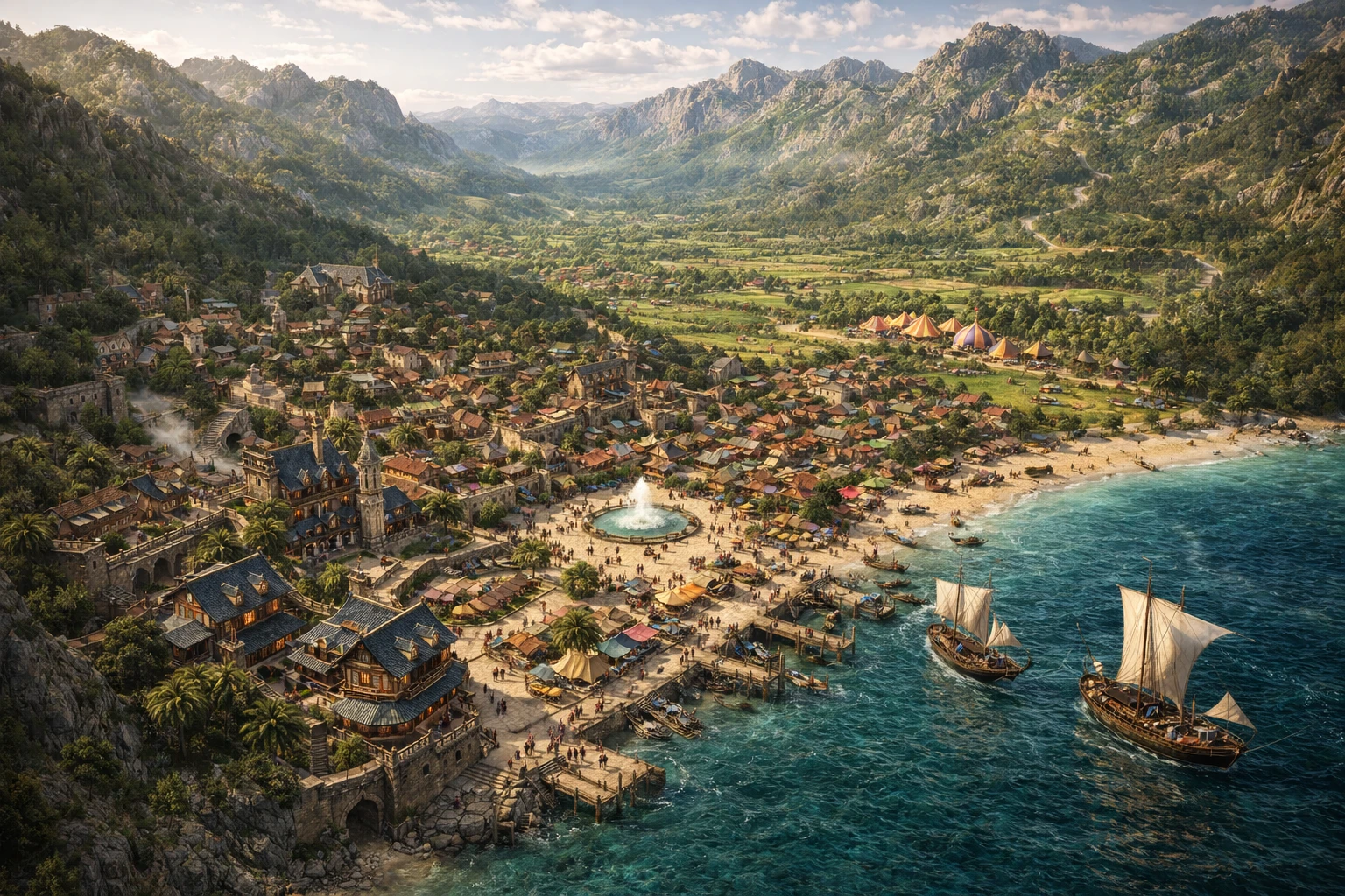 A major city in Zerith, the town of Summerset Cove is as idyllic as they come. Nestled in an expansive green valley, with its western edge on the sea, it is an ideal destination for all those coming and going. Its liquid population is one of the most diverse, seeing far more elves, dwarves, and halflings than any of the major cities. This is largely due to its location, as its port is often used for trade with other port cites along the coast of Zerith. While not welcome per se, the non-humans passing through bring good coin and wares, so they are accepted. There is a hard and fast rule though, that violence is not accepted, and bringing or starting real violence within the town can lead to expulsion for both the individual traveler, as well as any merchant groups they are associated with.