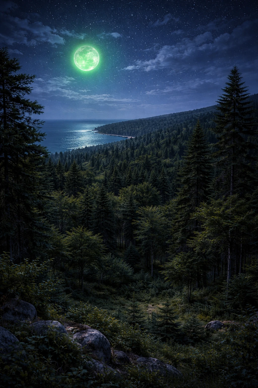 The Moonglade Forest stretches across the western tip of Zerith, a dense and enduring woodland of oak and pine that meets the sea along rugged, mist-lined shores. Though smaller in scale than the great Daelen Wood, the Moonglade is no less formidable—its thick canopy, uneven terrain, and shifting undergrowth make travel difficult for those unfamiliar with its paths. To those who know it, however, the forest reveals a quieter rhythm, one shaped by wind through the trees, the pull of the tides, and the steady turning of the moons overhead.