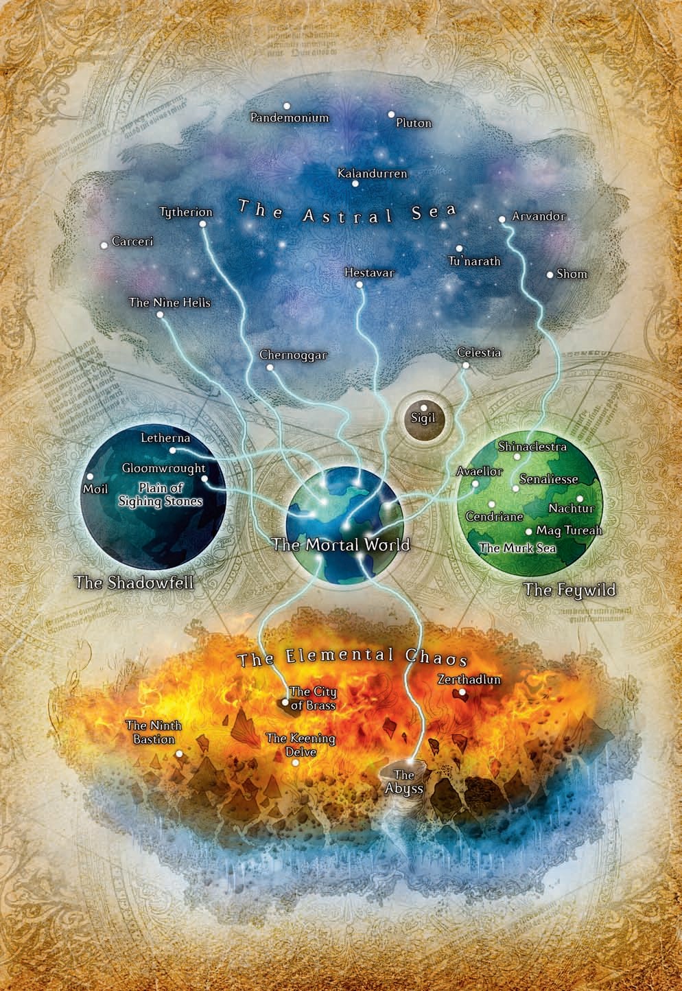 The Feywild: This magically infused version of the world is home to the fey. Magic runs thicker here, and the realm is governed by the seasonal Realms.